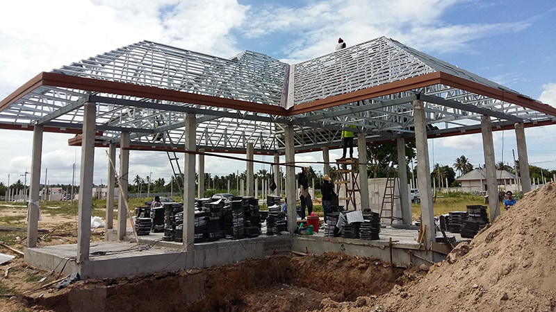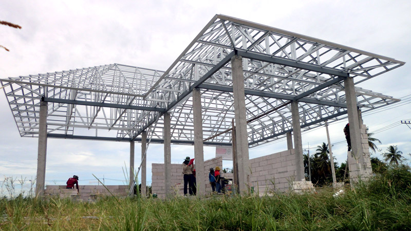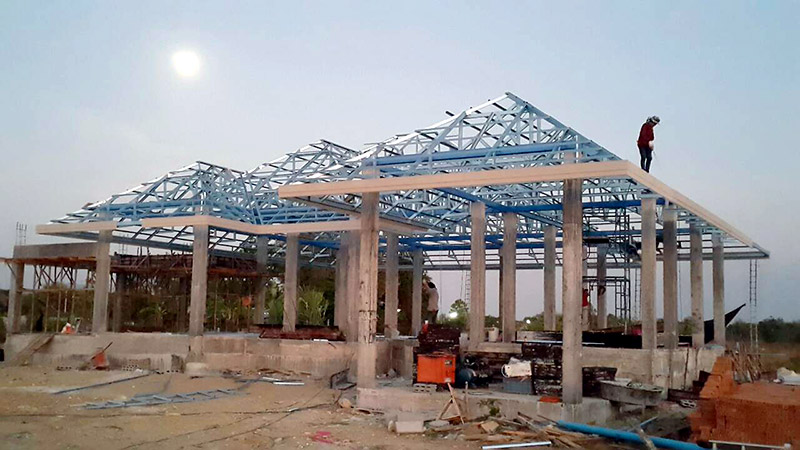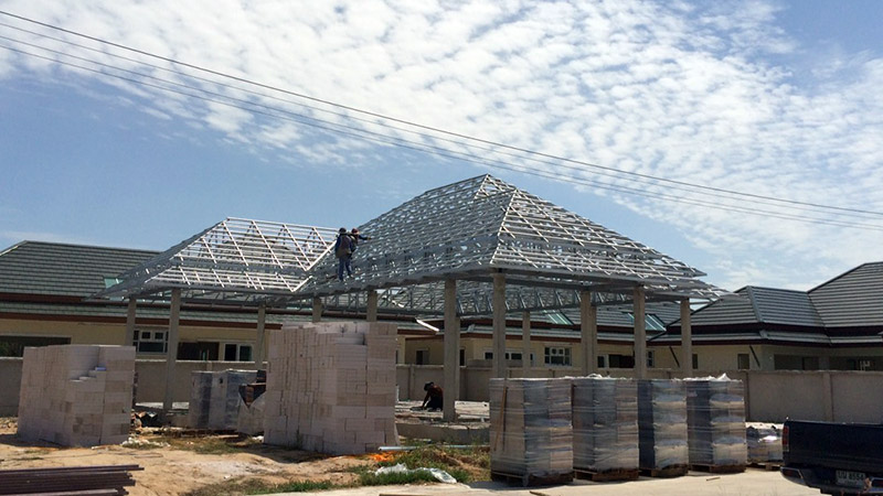 เมื่อติดตั้งโครงหลังคาเสร็จสิ้น