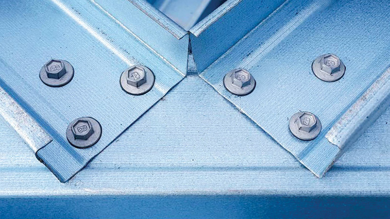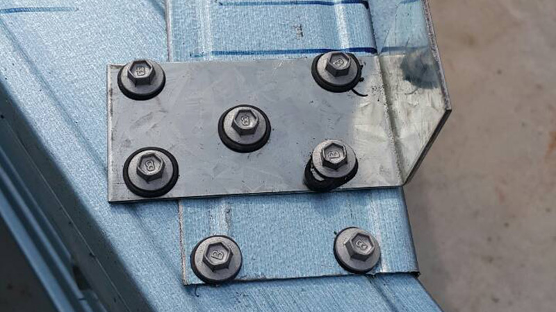 ลักษณะการต่อชิ้นด้วยสกรูเกลียวปล่อยและแผ่นเหล็ก